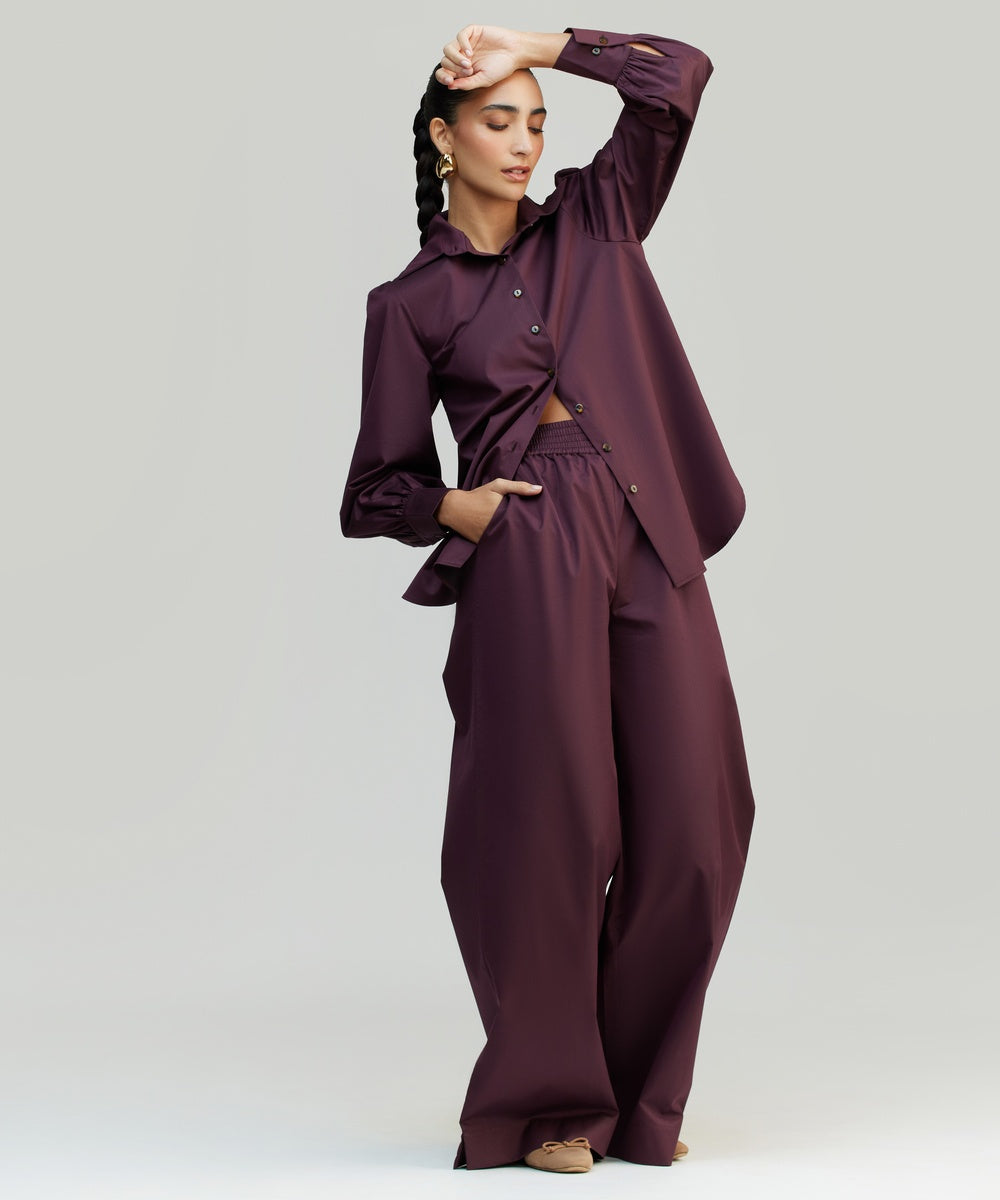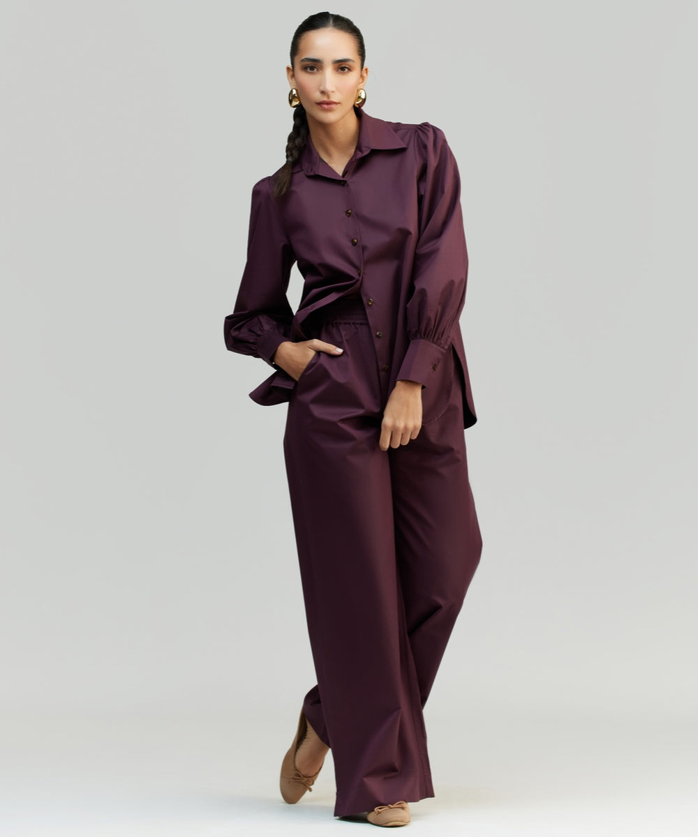 • Egyptian cotton bishop sleeved shirt in mulberry